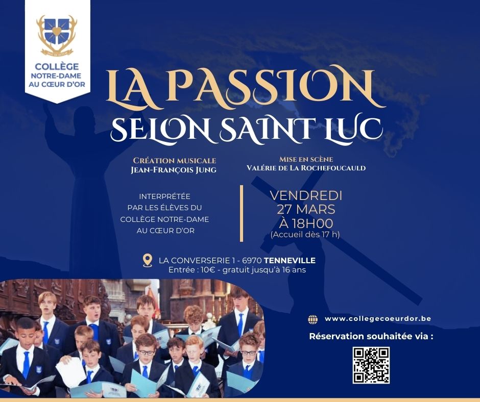 Dans le cadre du temps du Carême, le Collège Notre-Dame au Cœur d’Or a la joie de vous inviter à une soirée artistique et spirituelle exceptionnelle : 🎶 La Passion selon Saint Luc Cette création musicale de Jean-François Jung, mise en scène par Valérie de La Rochefoucauld, sera interprétée par les élèves du Collège. À […]
