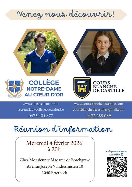 Le Cours Blanche de Castille et le Collège Notre-Dame au Cœur d’Or vous invitent à une réunion d’information autour de leurs projets éducatifs.